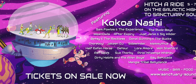 Proudly produced by the Sanctuary Sounds Charitable Trust. Sanctuary Sounds is a 3-day grassroots music festival in Takapau, NZ, featuring 20+ acts, free camping, food, art, costumes & family-friendly vibes.